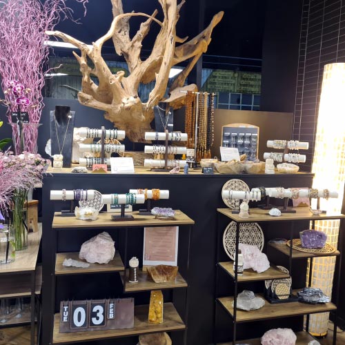 Retrouvez une partie des création de bijoux en pierres naturelles de MissChrisco, toute l'année en vous rendant dans le Centre Commercial des 4 arbres, chez le fleuriste Graine d'Onyx à Élancourt dans les Yvelines, créatrice intuitive de végétal et minéral.